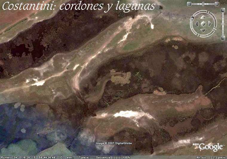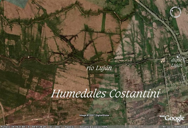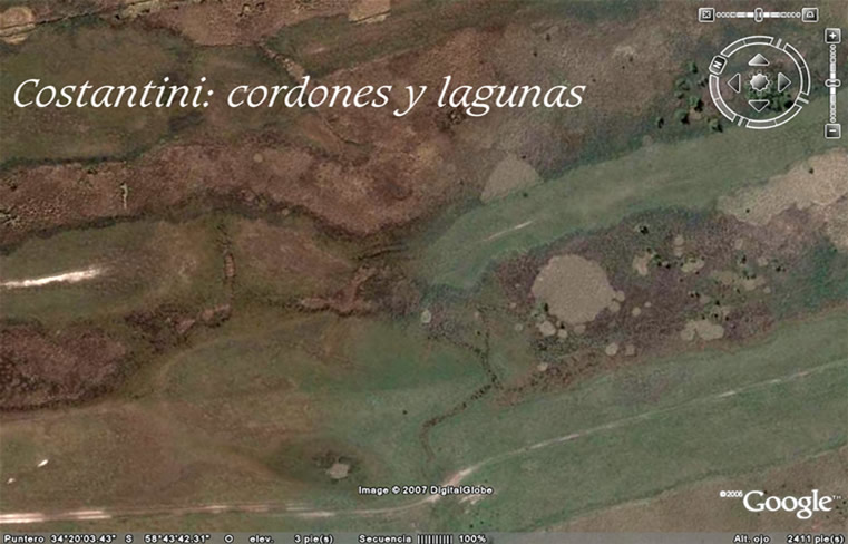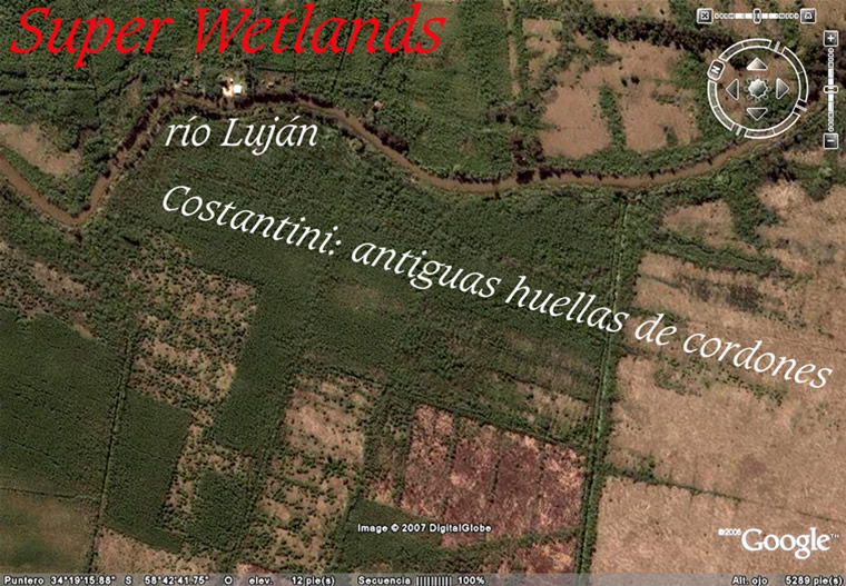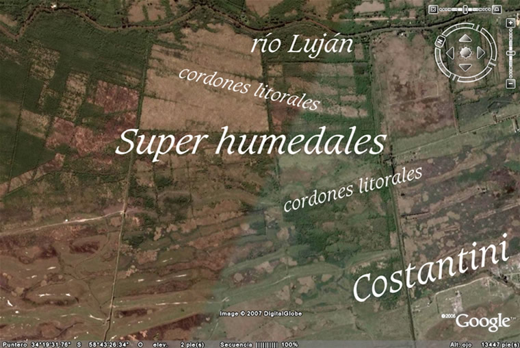 como áreas que incluyen humedales de superficies mucho más importantes, tal el caso de las áreas de los milenarios cordones litorales que las imágenes satelitales muestran saturadas a simple vista; y por cierto las más bajas que median entre estos cordones y el curso actual del Luján, que cumpliera función de antiguo corredor de flujos costaneros estuariales.
