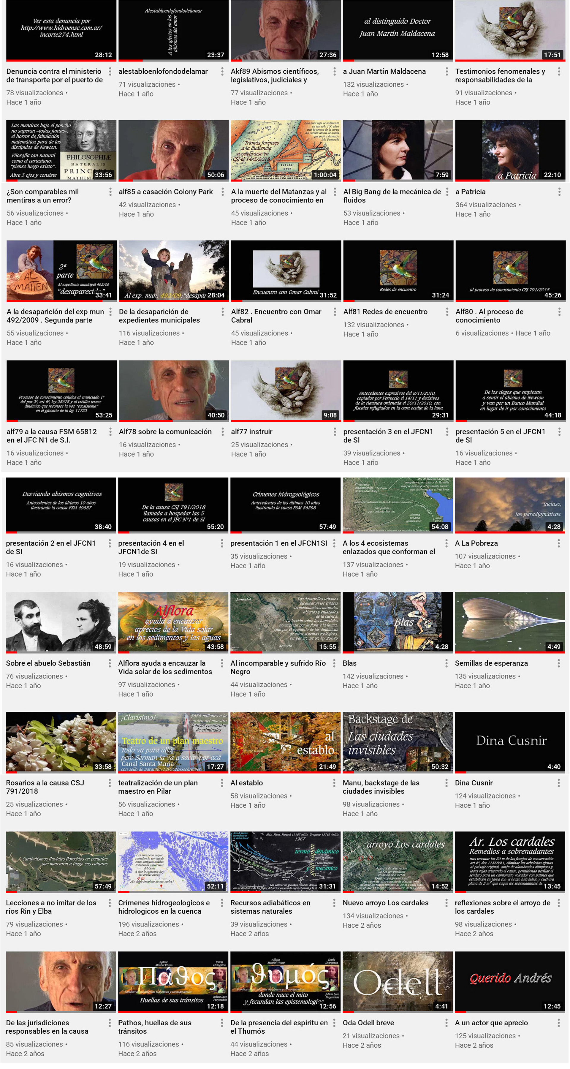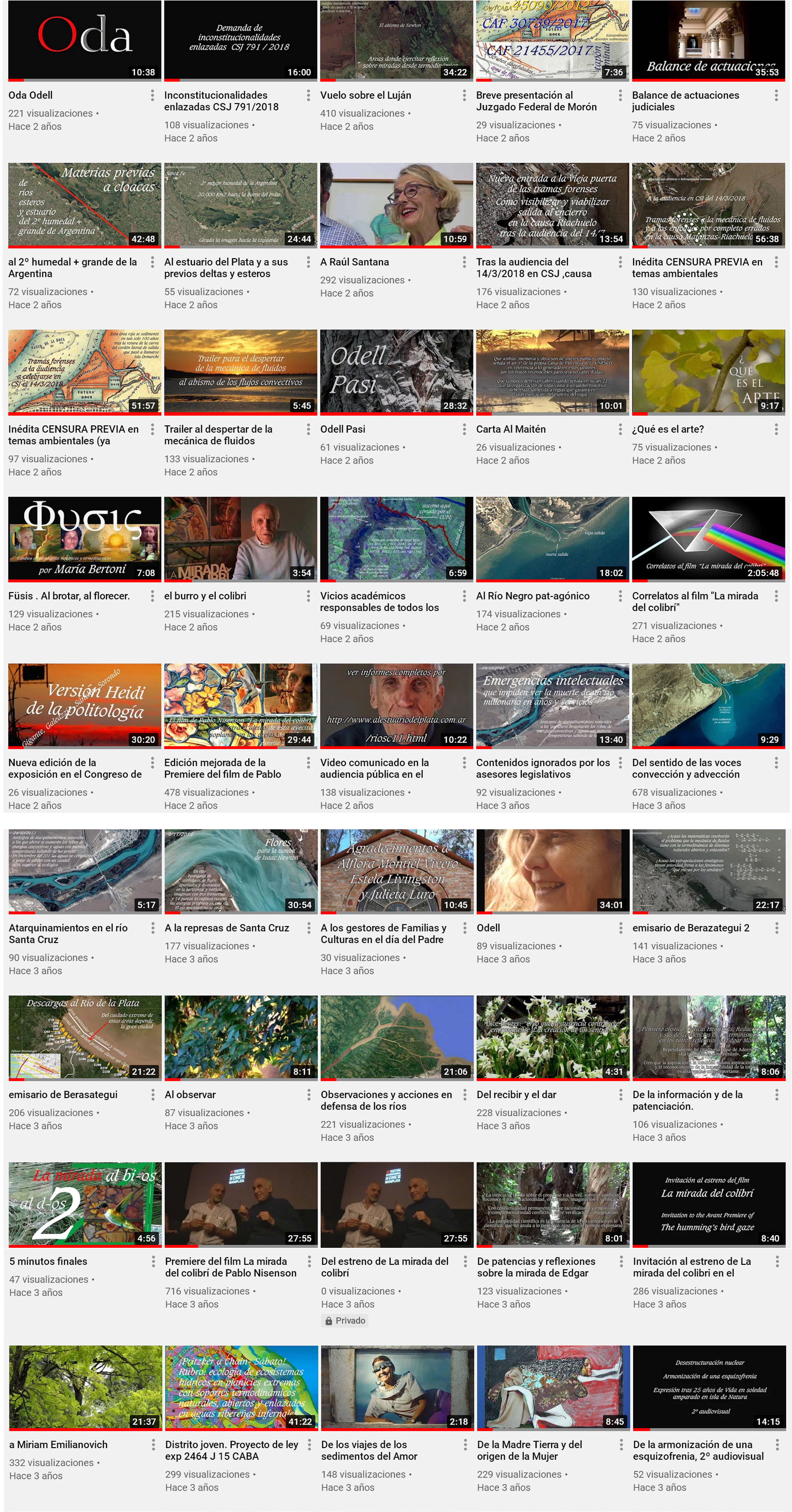 A soportes vivenciales La mirada del colibri https://www.youtube.com/watch?v=wY1b29vbhaY La mirada agradece, film de Pablo Nisenson, 120 minutos https://www.youtube.com/watch?v=AQJ5nbB9LyE De alma de Miriam Emilianovich https://www.youtube.com/watch?v=pekDR_PqByE Miriam 2 https://www.youtube.com/watch?v=1DIaGA-J__Q A Cecilia https://www.youtube.com/watch?v=PDmqHcP36mU De la partida de Julieta. De los viajes de los sedimentos del Amor. https://www.youtube.com/watch?v=JhYNKIdOW8s Invitación a la Premiere en el Festival del cine de Mar del Plata https://www.youtube.com/watch?v=4opDn0oi1Zo Interlocución tras la Premiere https://www.youtube.com/watch?v=8xrv3PZdzRk Premiere 5 minutos de interlocución https://www.youtube.com/watch?v=rMN1D7EYOZM Al 5º centenario del nacimiento de El Bosco https://www.youtube.com/watch?v=xFpJrNXfvI4 De patencias y reflexiones sobre la mirada de Edgar Morin https://www.youtube.com/watch?v=WoO0Y41Afc8&t=2s De la información y de la patenciación https://www.youtube.com/watch?v=Jb8URZtR8NM Del dar y el recibir. A la partida de John Berger https://www.youtube.com/watch?v=p3BkCyqz4N0 Al observar https://www.youtube.com/watch?v=rBT9q8IxvPc El establo de un cordero degollado https://www.youtube.com/watch?v=Dku34MgNbGY A los gestores de Familias y culturas en el día del Padre https://www.youtube.com/watch?v=hYvy3lNtQPY Alestabloenlofondodelamar . A los afectos en los abismos del Amor https://www.youtube.com/watch?v=xFpJrNXfvI4 Odell, hermana del alma https://www.youtube.com/watch?v=DkXpSf_VFaw&t=93s De la armonización de la esquizofrenia. Parte 1ª https://www.youtube.com/watch?v=eaC4TUpU-XQ De la armonización de la esquizofrenia. Parte 2ª https://www.youtube.com/watch?v=M_pBC3flxaI Füsis, del brotar y el florecer https://www.youtube.com/watch?v=5FThYGwqlhc Trailer del colibrí https://www.youtube.com/watch?v=8Q7CMZOlOYI Odell Pasi https://www.youtube.com/watch?v=AYTLQjB6kGQ Terruño https://www.youtube.com/watch?v=Ue9ZJGVJjkk ¿Qué es el arte? https://www.youtube.com/watch?v=AATvJ1UbCL0 Carta Al Maitén https://www.youtube.com/watch?v=A-xr00W9UwU A Raúl Santana https://www.youtube.com/watch?v=wCnhXB3oFPk Oda Odell https://www.youtube.com/watch?v=k6RbhKPC7sc Odell. El último libro de papel https://www.youtube.com/watch?v=LoslDO8ApWU&t=3s Dina Cusnir https://www.youtube.com/watch?v=pfNTZ81eBqo Valle de santiago De los sedimenos atesorados en los terruños https://www.youtube.com/watch?v=OtujAGbqOLg A Patricia https://www.youtube.com/watch?v=ScQrxnwgq_4 Julieta https://www.youtube.com/watch?v=JhYNKIdOW8s Manu, backstage de las ciudades invisibles https://www.youtube.com/watch?v=8BxSpN__cWI Al establo Semillas de esperanza https://www.youtube.com/watch?v=0o9e1lugRQw Blas https://www.youtube.com/watch?v=bMlU6Ke8jIs alestabloenlofondodelamar https://www.youtube.com/watch?v=RmFHc5t_J8s Sobre el abuelo https://www.youtube.com/watch?v=jaO3jFIzaekjulio 2003 La imprenta dunken . 16/8/2004 https://www.youtube.com/watch?v=qaHybwmvrNE Enlace Chalde Murcia - Campos Borenzstein . 12/2/2006 https://www.youtube.com/watch?v=jASMldSmxWs Domato https://www.youtube.com/watch?v=hvxt7uiE34I Domato . San Pedro 100 https://www.youtube.com/watch?v=Hs3_MeYGpBM Manu, backstage de las ciudades invisibles https://www.youtube.com/watch?v=8BxSpN__cWIDe las normas https://www.youtube.com/watch?v=441cR-athfQ Al encuentro de Rolo Freyre https://www.youtube.com/watch?v=iOMHBXWQLOw A los expedientes del Valle de Santiago https://www.youtube.com/watch?v=MiqcIHUf20c adoquines (Carlos Leyba) https://www.youtube.com/watch?v=VBePZiPw9SQ&t=77s 40 primaveras https://www.youtube.com/watch?v=uyNcRhSWgvU&t=246s Anamari Aldaburu https://www.youtube.com/watch?v=Pc6JioBdKIY ARBA Girard https://www.youtube.com/watch?v=Ro9Yvo7gEYU donacion del establo https://www.youtube.com/watch?v=tcAiKbv5Y28 Vivencias trailer https://www.youtube.com/watch?v=J1S88m5An-I&t=11s "Vivencias" https://www.youtube.com/watch?v=55bJ1UYElSQ Vivencias en inglés https://www.youtube.com/watch?v=lBXMD3myt0A Vivencias con transcripción https://www.youtube.com/watch?v=LDPYFYOfw6A ARBA arrasa https://www.youtube.com/watch?v=KnlfNVzmxuk sin Amor . alas de Amor de un Angel de Pontevedra https://www.youtube.com/watch?v=kBUSGl7RJxc Reportaje al Abuelo de ETB Julio 2003. Nueva edición 2024 https://www.youtube.com/watch?v=HmC91AlCS54&t=625s Reportajes 3. Del 2007 y dos del 2024 https://www.youtube.com/watch?v=AmHF8gF0j3I&t=531s